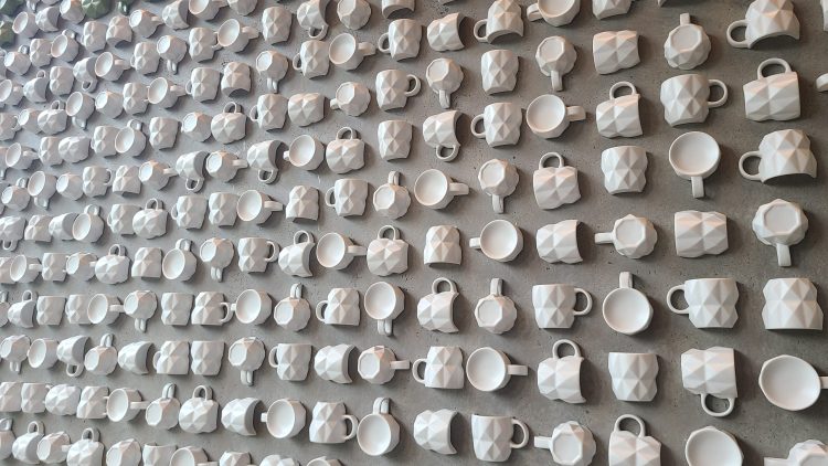 로즈골드 빛깔의 텀블러나 머그컵, 원두 보관용 캔 등 여러 굿즈를 팔고 있었는데